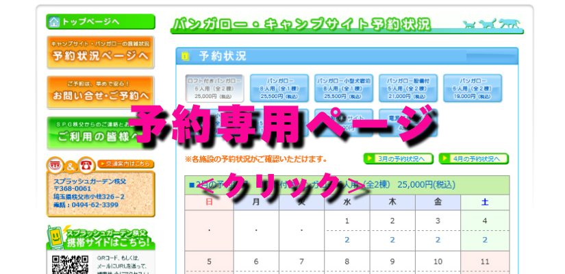 ◆スプラッシュガーデン秩父オートキャンプ場・バンガロー予約状況◆